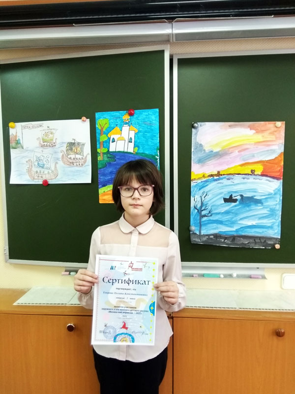 Победителем окружного этапа конкурса детского рисунка «Московский вернисаж- 22» стала Глебова София. Остальные участники были награждены сертификатами конкурса.